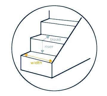 5. When measuring straight stairs, measure from the back of the top riser (where it meets the previous step), over the nose (edge of the step) and down to the back of the next tread (where it meets the next step), then measure the width and jot both measurements down on your plan.