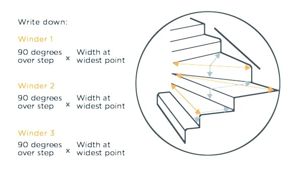 4. Next, make a list of how many straight stairs you have and how many are winders. The winders will need to be measured individually as they’ll all be different sizes. And we might sound like a broken record, but it’s worth repeating - only record actual measurements on your plan!